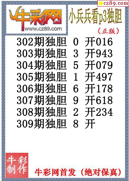 > 小兵兵独胆309期体彩P3图谜(原创)
